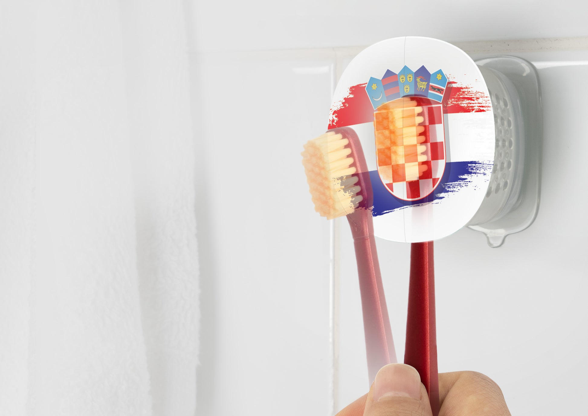 CroBrush je pažljivo osmišljen poklon-paket koji spaja funkcionalnost svakodnevice s prepoznatljivim vizualnim identitetom Hrvatske. U njemu se nalaze dvije kvalitetne zubne četkice soft i dva estetski oblikovana držača, dizajnirana za putovanja i boravak izvan doma.